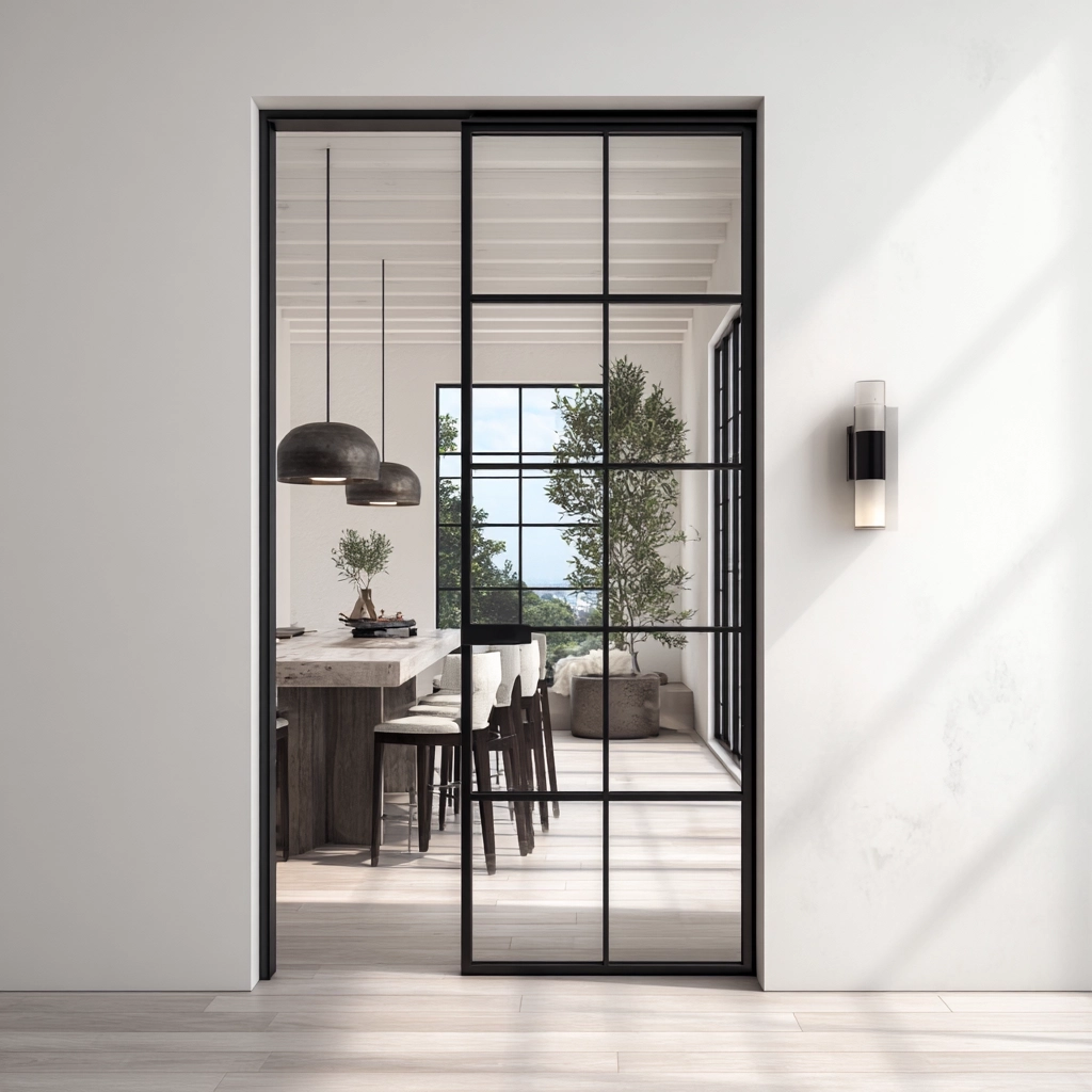 When you think about the kitchen and dining areas, it’s all about flow and openness. Glass pocket doors are the perfect fit here. They allow natural light to flow freely between the kitchen and dining room while providing a touch of separation when needed. This design not only looks chic but also maximizes space and light, making it ideal for small or open-plan kitchens.