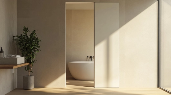 A Pocket Door slides seamlessly on a hidden track, disappearing entirely into a wall cavity when open. This ingenious design eliminates the swing space of a traditional door, freeing up floor area and enabling cleaner sightlines and a minimalist aesthetic.