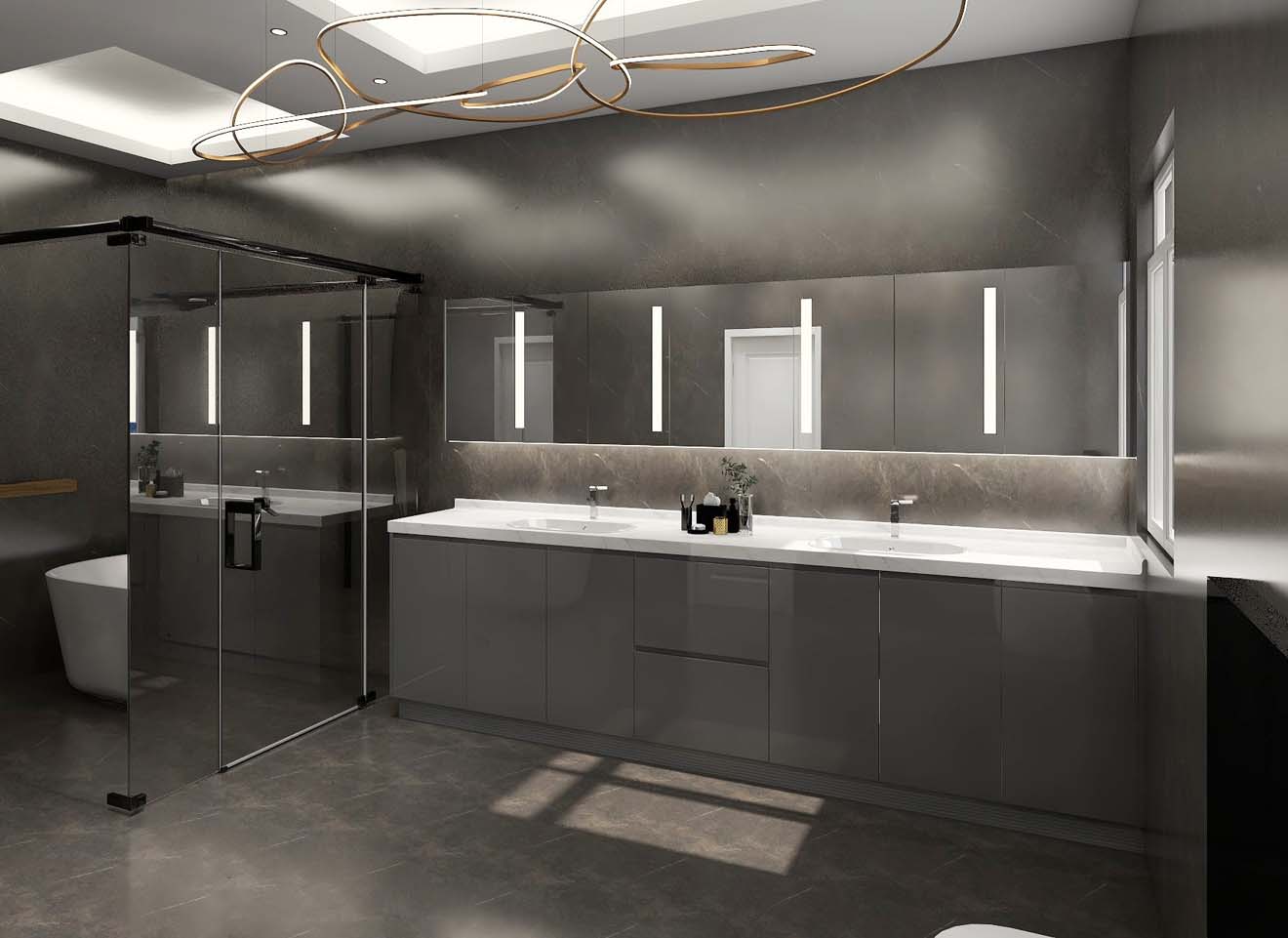 The Modern Black Lacquer Double Sink Bathroom Vanity is designed to offer maximum functionality. The ergonomic height and spacious countertop make it comfortable for daily use, while the smooth opening cabinets and drawers provide easy access to toiletries and bathroom essentials, keeping your space organized and clutter-free.